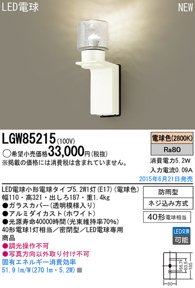 Panasonic LED ¥¨¥¯¥¹¥Æ¥ê¥¢¡¦¥¢¥¦¥È¥É¥¢ LGW85215