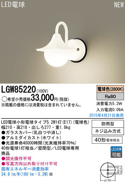 Panasonic LED ¥¨¥¯¥¹¥Æ¥ê¥¢¡¦¥¢¥¦¥È¥É¥¢ LGW85220