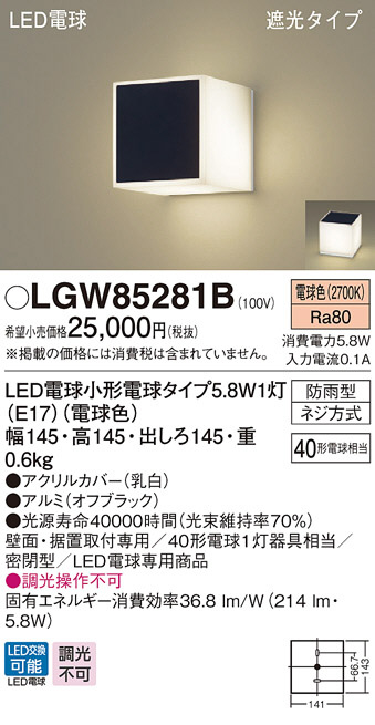 Panasonic LED ¥¨¥¯¥¹¥Æ¥ê¥¢¡¦¥¢¥¦¥È¥É¥¢ LGW85281B