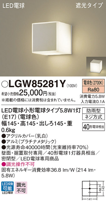 Panasonic LED ¥¨¥¯¥¹¥Æ¥ê¥¢¡¦¥¢¥¦¥È¥É¥¢ LGW85281Y
