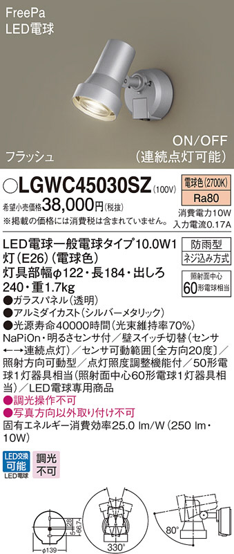 Panasonic LED ¥¨¥¯¥¹¥Æ¥ê¥¢¡¦¥¢¥¦¥È¥É¥¢ LGWC45030SZ
