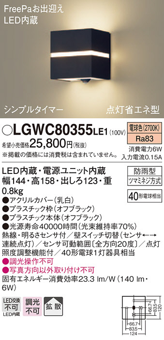 Panasonic ¥¨¥¯¥¹¥Æ¥ê¥¢¡¦¥¢¥¦¥È¥É¥¢ LGWC80355LE1