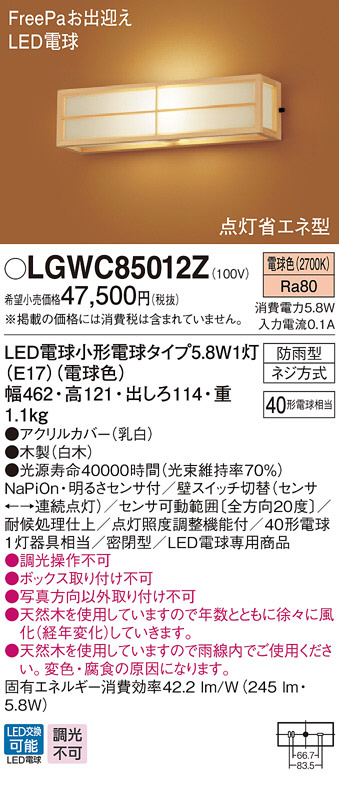 Panasonic LED ¥¨¥¯¥¹¥Æ¥ê¥¢¡¦¥¢¥¦¥È¥É¥¢ LGWC85012Z
