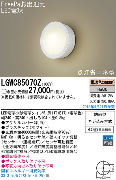 Panasonic LED ¥¨¥¯¥¹¥Æ¥ê¥¢¡¦¥¢¥¦¥È¥É¥¢ LGWC85070Z