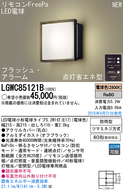 Panasonic LED ¥¨¥¯¥¹¥Æ¥ê¥¢¡¦¥¢¥¦¥È¥É¥¢ LGWC85121B