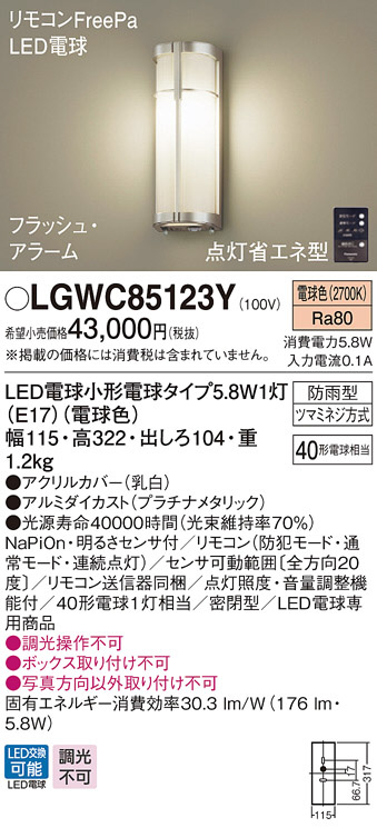 Panasonic LED ¥¨¥¯¥¹¥Æ¥ê¥¢¡¦¥¢¥¦¥È¥É¥¢ LGWC85123Y