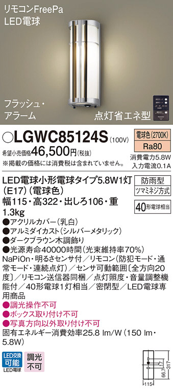 Panasonic LED ¥¨¥¯¥¹¥Æ¥ê¥¢¡¦¥¢¥¦¥È¥É¥¢ LGWC85124S