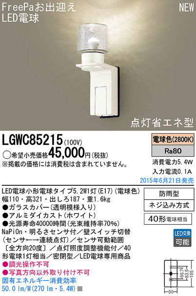 Panasonic LED ¥¨¥¯¥¹¥Æ¥ê¥¢¡¦¥¢¥¦¥È¥É¥¢ LGWC85215