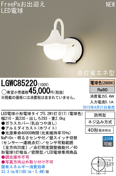 Panasonic LED ¥¨¥¯¥¹¥Æ¥ê¥¢¡¦¥¢¥¦¥È¥É¥¢ LGWC85220