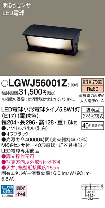 Panasonic LED ¥¨¥¯¥¹¥Æ¥ê¥¢¡¦¥¢¥¦¥È¥É¥¢ LGWJ56001Z