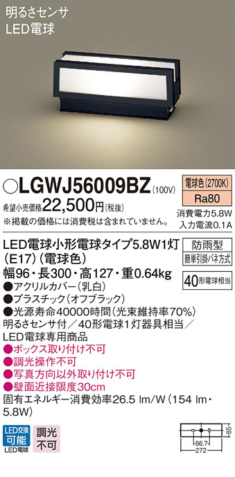 Panasonic LED ¥¨¥¯¥¹¥Æ¥ê¥¢¡¦¥¢¥¦¥È¥É¥¢ LGWJ56009BZ