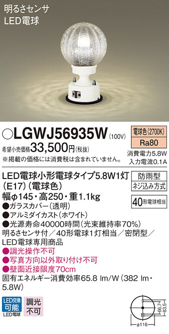Panasonic LED ¥¨¥¯¥¹¥Æ¥ê¥¢¡¦¥¢¥¦¥È¥É¥¢ LGWJ56935W