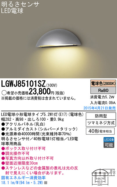 Panasonic LED ¥¨¥¯¥¹¥Æ¥ê¥¢¡¦¥¢¥¦¥È¥É¥¢ LGWJ85101SZ