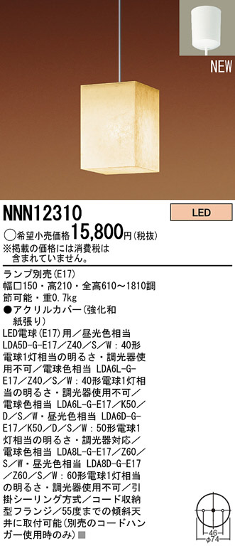 Panasonic LED ¥Ú¥ó¥À¥ó¥È¥é¥¤¥È NNN12310