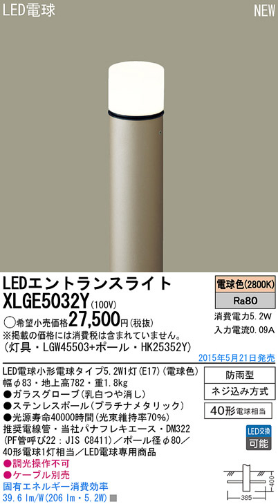 Panasonic LED ¥¨¥¯¥¹¥Æ¥ê¥¢¡¦¥¢¥¦¥È¥É¥¢ XLGE5032Y