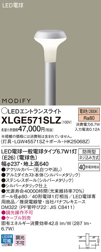 Panasonic LED ¥¨¥¯¥¹¥Æ¥ê¥¢¡¦¥¢¥¦¥È¥É¥¢ XLGE571SLZ