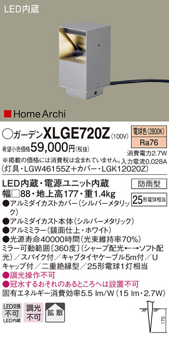 Panasonic LED ¥¨¥¯¥¹¥Æ¥ê¥¢¡¦¥¢¥¦¥È¥É¥¢ XLGE720Z