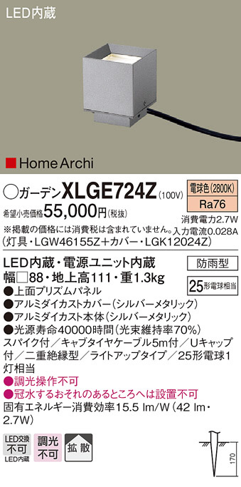 Panasonic LED ¥¨¥¯¥¹¥Æ¥ê¥¢¡¦¥¢¥¦¥È¥É¥¢ XLGE724Z