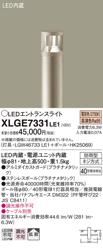 Panasonic LED ¥¨¥¯¥¹¥Æ¥ê¥¢¡¦¥¢¥¦¥È¥É¥¢ XLGE7331LE1