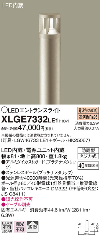 Panasonic LED ¥¨¥¯¥¹¥Æ¥ê¥¢¡¦¥¢¥¦¥È¥É¥¢ XLGE7332LE1