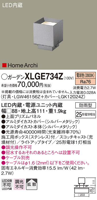 Panasonic LED ¥¨¥¯¥¹¥Æ¥ê¥¢¡¦¥¢¥¦¥È¥É¥¢ XLGE734Z