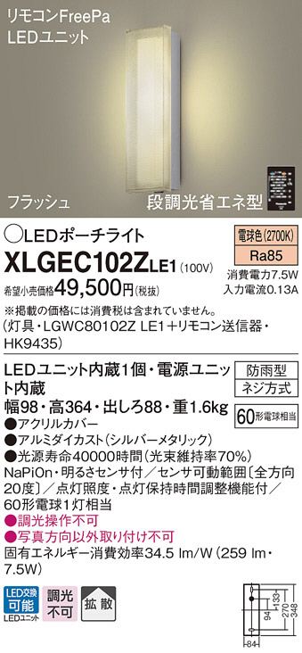 Panasonic LED ¥¨¥¯¥¹¥Æ¥ê¥¢¡¦¥¢¥¦¥È¥É¥¢ XLGEC102ZLE1