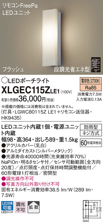 Panasonic LED ¥¨¥¯¥¹¥Æ¥ê¥¢¡¦¥¢¥¦¥È¥É¥¢ XLGEC115ZLE1