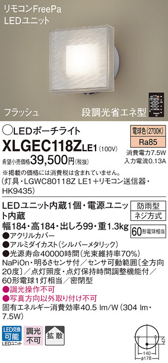 Panasonic LED ¥¨¥¯¥¹¥Æ¥ê¥¢¡¦¥¢¥¦¥È¥É¥¢ XLGEC118ZLE1