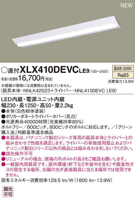 Panasonic LED ¥·¡¼¥ê¥ó¥°¥é¥¤¥È XLX410DEVCLE9