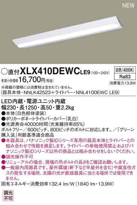 Panasonic LED ¥·¡¼¥ê¥ó¥°¥é¥¤¥È XLX410DEWCLE9