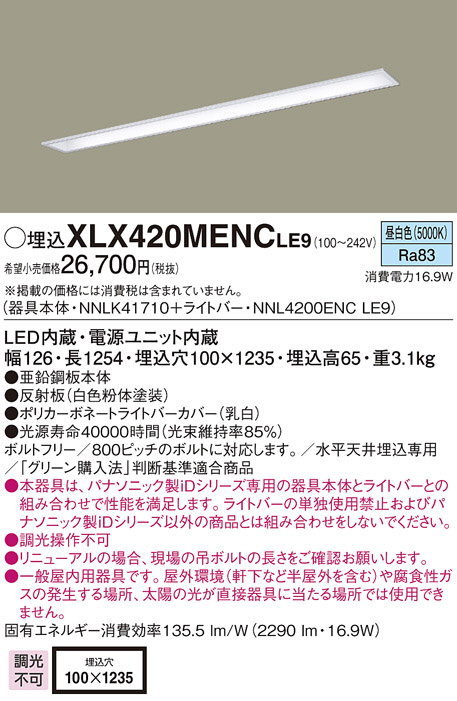 Panasonic LED ¥·¡¼¥ê¥ó¥°¥é¥¤¥È XLX420MENCLE9