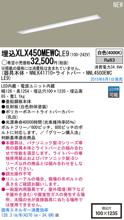 Panasonic LED ¥·¡¼¥ê¥ó¥°¥é¥¤¥È XLX450MEWCLE9