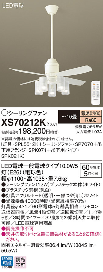 Panasonic LED ¥·¡¼¥ê¥ó¥°¥Õ¥¡¥ó¡¦¥¤¥ó¥Æ¥ê¥¢¥Õ¥¡¥ó XS70212K