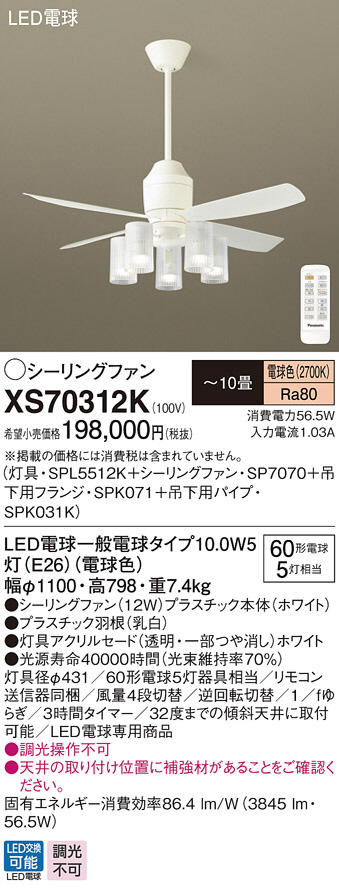 Panasonic LED ¥·¡¼¥ê¥ó¥°¥Õ¥¡¥ó¡¦¥¤¥ó¥Æ¥ê¥¢¥Õ¥¡¥ó XS70312K