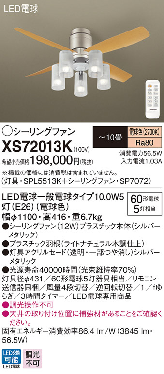 Panasonic LED ¥·¡¼¥ê¥ó¥°¥Õ¥¡¥ó¡¦¥¤¥ó¥Æ¥ê¥¢¥Õ¥¡¥ó XS72013K