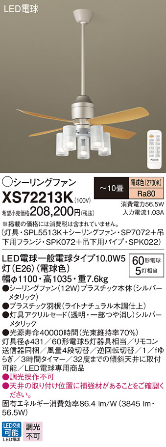 Panasonic LED ¥·¡¼¥ê¥ó¥°¥Õ¥¡¥ó¡¦¥¤¥ó¥Æ¥ê¥¢¥Õ¥¡¥ó XS72213K