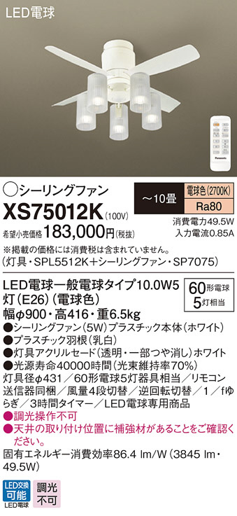 Panasonic LED ¥·¡¼¥ê¥ó¥°¥Õ¥¡¥ó¡¦¥¤¥ó¥Æ¥ê¥¢¥Õ¥¡¥ó XS75012K