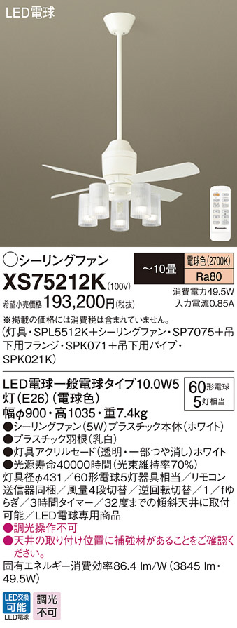 Panasonic LED ¥·¡¼¥ê¥ó¥°¥Õ¥¡¥ó¡¦¥¤¥ó¥Æ¥ê¥¢¥Õ¥¡¥ó XS75212K