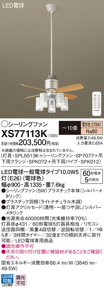 Panasonic LED ¥·¡¼¥ê¥ó¥°¥Õ¥¡¥ó¡¦¥¤¥ó¥Æ¥ê¥¢¥Õ¥¡¥ó XS77113K