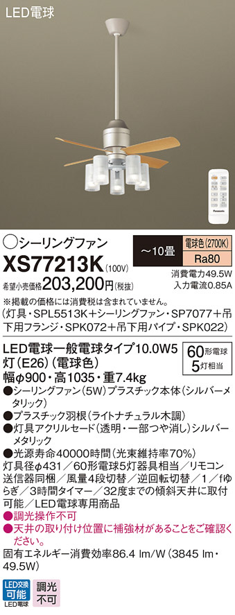 Panasonic LED ¥·¡¼¥ê¥ó¥°¥Õ¥¡¥ó¡¦¥¤¥ó¥Æ¥ê¥¢¥Õ¥¡¥ó XS77213K