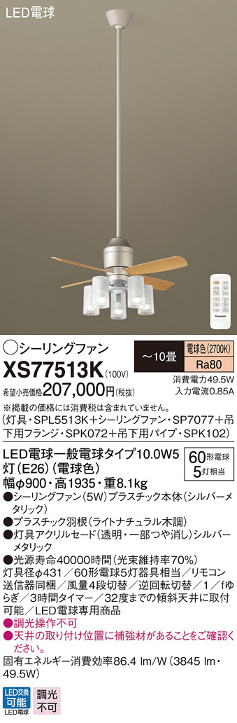 Panasonic LED ¥·¡¼¥ê¥ó¥°¥Õ¥¡¥ó¡¦¥¤¥ó¥Æ¥ê¥¢¥Õ¥¡¥ó XS77513K