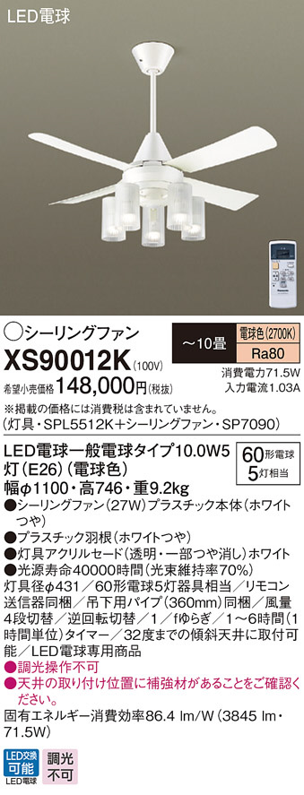 Panasonic LED ¥·¡¼¥ê¥ó¥°¥Õ¥¡¥ó¡¦¥¤¥ó¥Æ¥ê¥¢¥Õ¥¡¥ó XS90012K