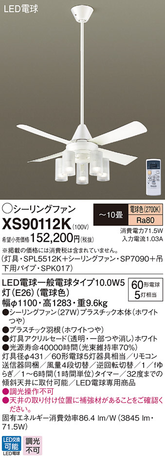 Panasonic LED ¥·¡¼¥ê¥ó¥°¥Õ¥¡¥ó¡¦¥¤¥ó¥Æ¥ê¥¢¥Õ¥¡¥ó XS90112K