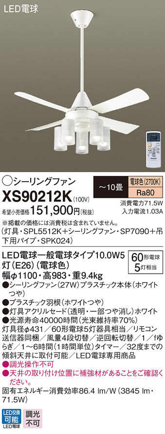 Panasonic LED ¥·¡¼¥ê¥ó¥°¥Õ¥¡¥ó¡¦¥¤¥ó¥Æ¥ê¥¢¥Õ¥¡¥ó XS90212K