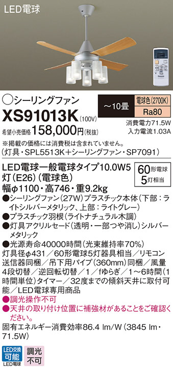 Panasonic LED ¥·¡¼¥ê¥ó¥°¥Õ¥¡¥ó¡¦¥¤¥ó¥Æ¥ê¥¢¥Õ¥¡¥ó XS91013K