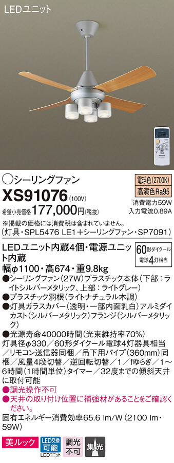 Panasonic LED ¥·¡Ý¥ê¥ó¥°¥Õ¥¡¥ó¡¦¥¤¥ó¥Æ¥ê¥¢¥Õ¥¡¥ó XS91076