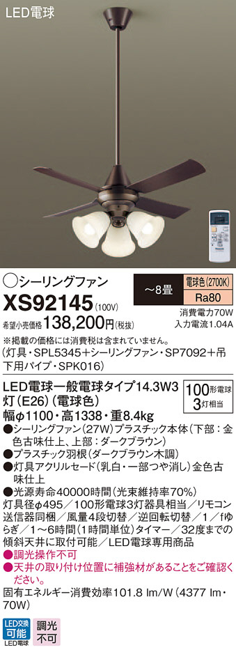 Panasonic LED ¥·¡Ý¥ê¥ó¥°¥Õ¥¡¥ó¡¦¥¤¥ó¥Æ¥ê¥¢¥Õ¥¡¥ó XS92145
