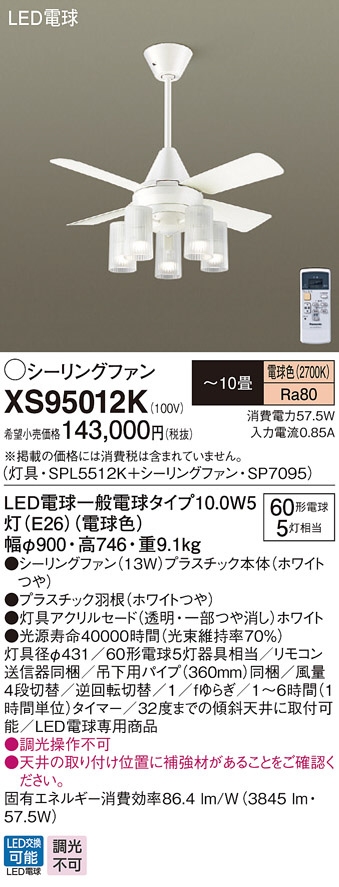 Panasonic LED ¥·¡¼¥ê¥ó¥°¥Õ¥¡¥ó¡¦¥¤¥ó¥Æ¥ê¥¢¥Õ¥¡¥ó XS95012K