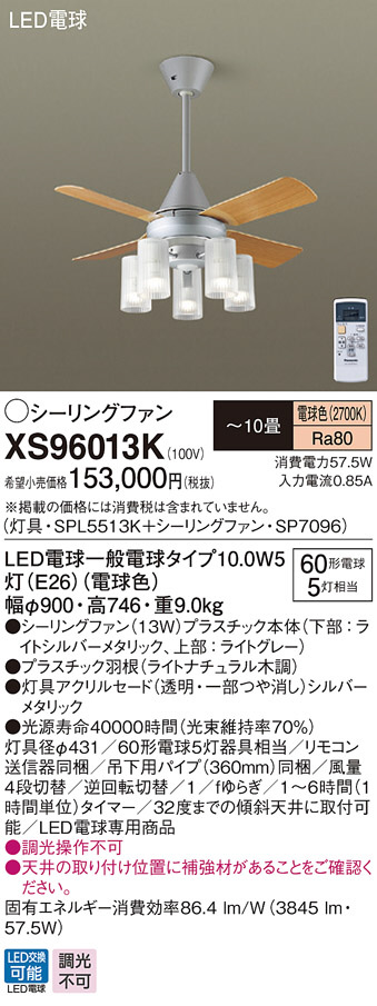 Panasonic LED ¥·¡¼¥ê¥ó¥°¥Õ¥¡¥ó¡¦¥¤¥ó¥Æ¥ê¥¢¥Õ¥¡¥ó XS96013K