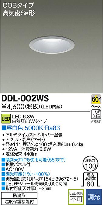 DAIKO Âç¸÷Åŵ¡ LED¥À¥¦¥ó¥é¥¤¥È(¸®²¼·óÍÑ) DDL-002WS